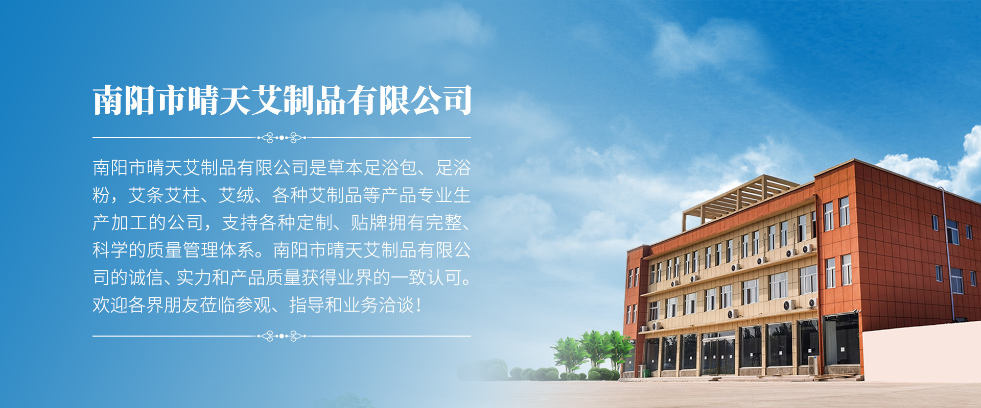 南陽(yáng)市晴艾制品有限公司是草本足浴包,足浴粉,艾條艾柱,艾絨,各種艾制品等產(chǎn)品專業(yè)加工生產(chǎn)的公司,支持各種定制、貼牌,來(lái)料來(lái)樣加工,擁有完整,科學(xué)的質(zhì)量管理體系,公司的誠(chéng)信、實(shí)力和產(chǎn)品質(zhì)量獲得業(yè)界和消費(fèi)者的一致認(rèn)可。歡迎各界朋友蒞臨參觀、指導(dǎo)和業(yè)務(wù)洽談!