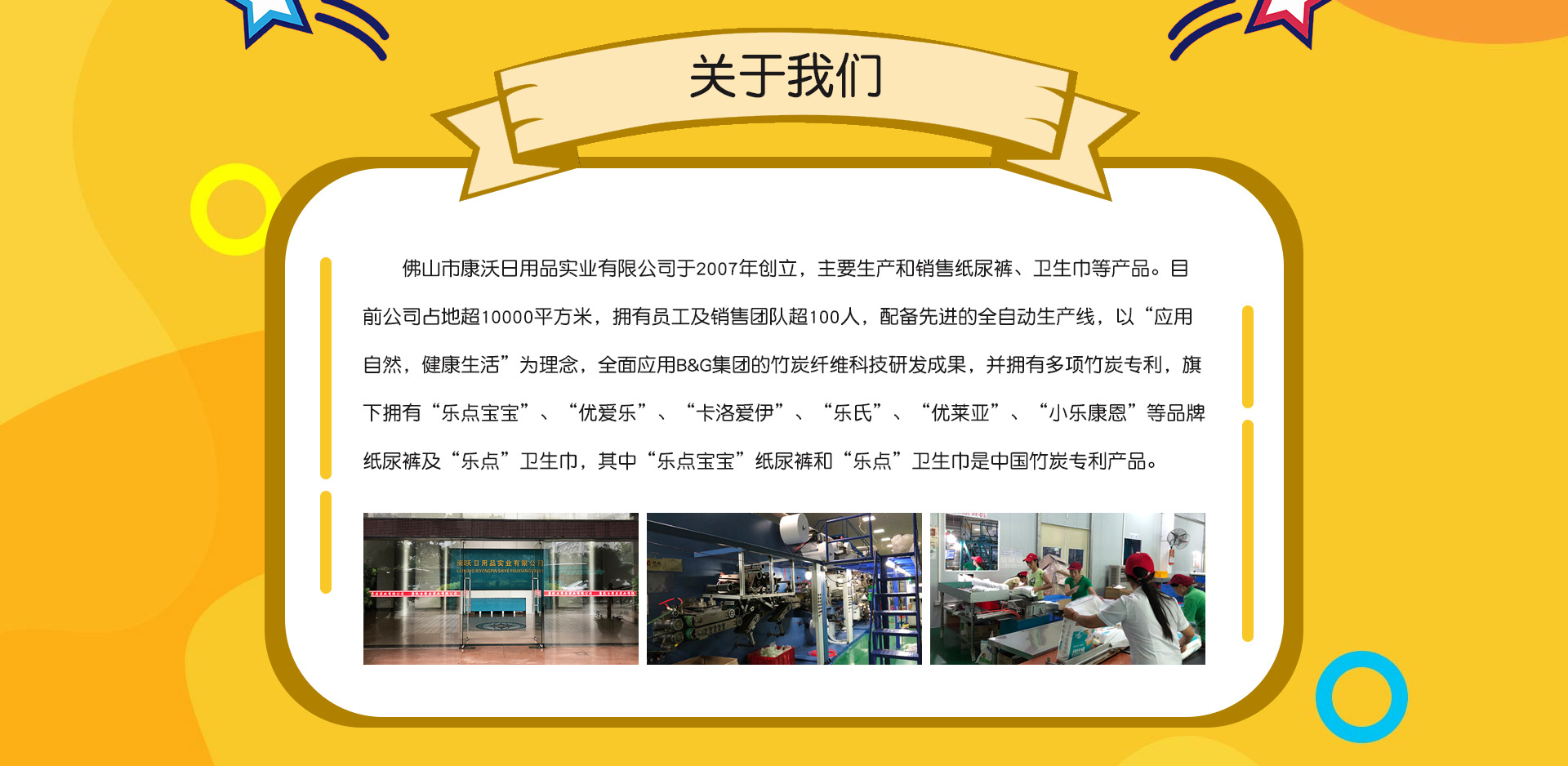 佛山市康沃日用品實(shí)業(yè)有限公司是紙尿褲、原料、衛(wèi)生巾等產(chǎn)品專業(yè)生產(chǎn)加工的公司,擁有完整、科學(xué)的質(zhì)量管理體系。佛山市康沃日用品實(shí)業(yè)有限公司的誠信、實(shí)力和產(chǎn)品質(zhì)量獲得業(yè)界的認(rèn)可。歡迎各界朋友蒞臨參觀、指導(dǎo)和業(yè)務(wù)洽談。 B&G INT(USA)有限公司,世界有名日用消費(fèi)品公司。公司總部位于USA科羅拉多州丹佛市2300大街80205號(hào)。B&G公司在日用化學(xué)品市場(chǎng)上具有較高的名聲,其產(chǎn)品主要包括紙制品、嬰兒護(hù)理產(chǎn)品、婦女衛(wèi)生用品、醫(yī)藥、織物、家居護(hù)理、個(gè)人清潔用品等。旗下紙尿褲品牌卡洛愛伊由佛山市康沃日用品實(shí)業(yè)有限公司展開大中華地區(qū)運(yùn)營。