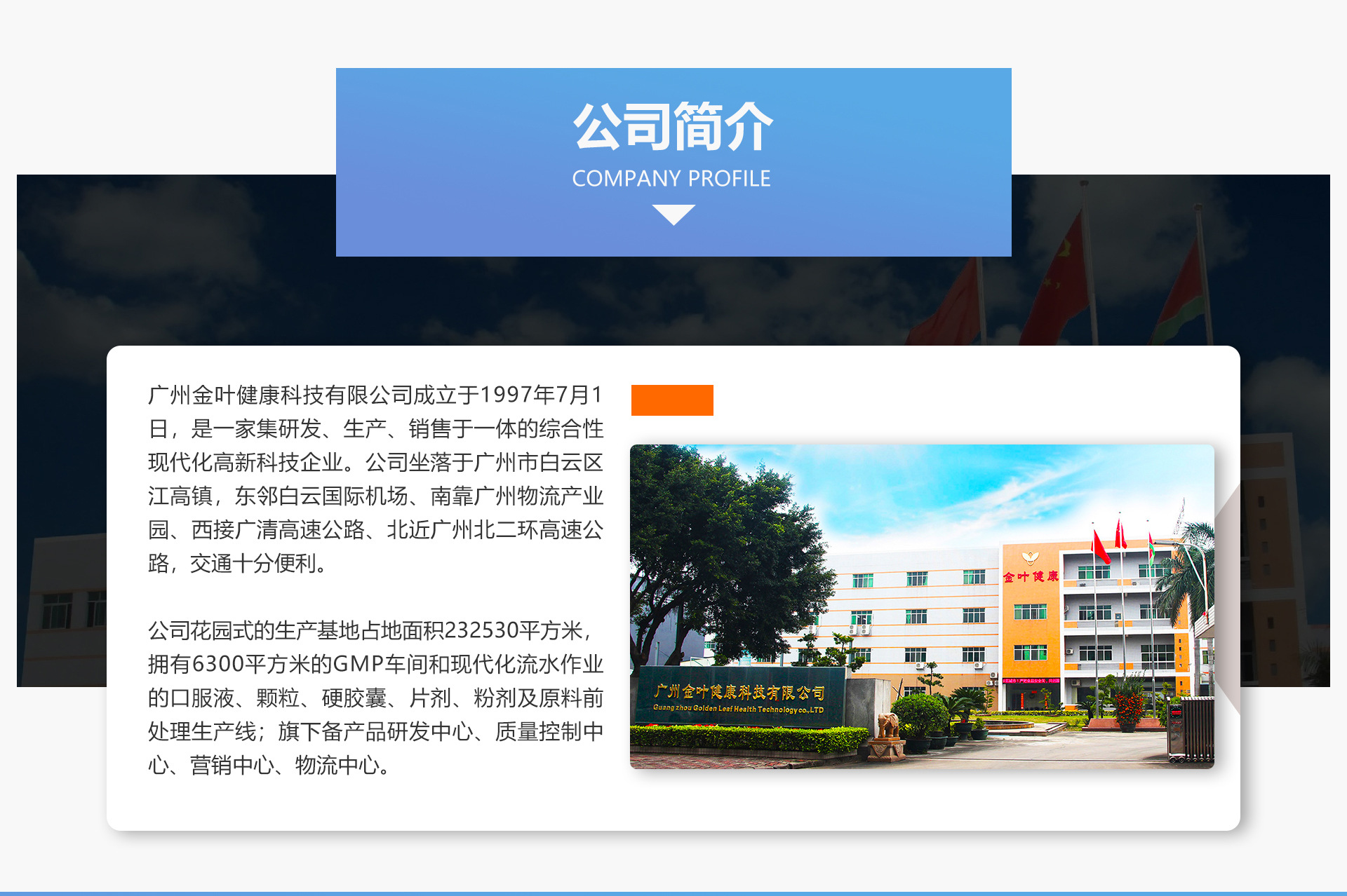 公司花園式的生產(chǎn)基地占地面積23530平方米,擁有6300平方米的GMP車間和現(xiàn)代化流水作業(yè)的口服液、顆粒、硬膠囊、片劑、粉劑及原料前處理生產(chǎn)線;旗下備產(chǎn)品研發(fā)中心、質(zhì)量控制中心、營銷中心、物流中心。