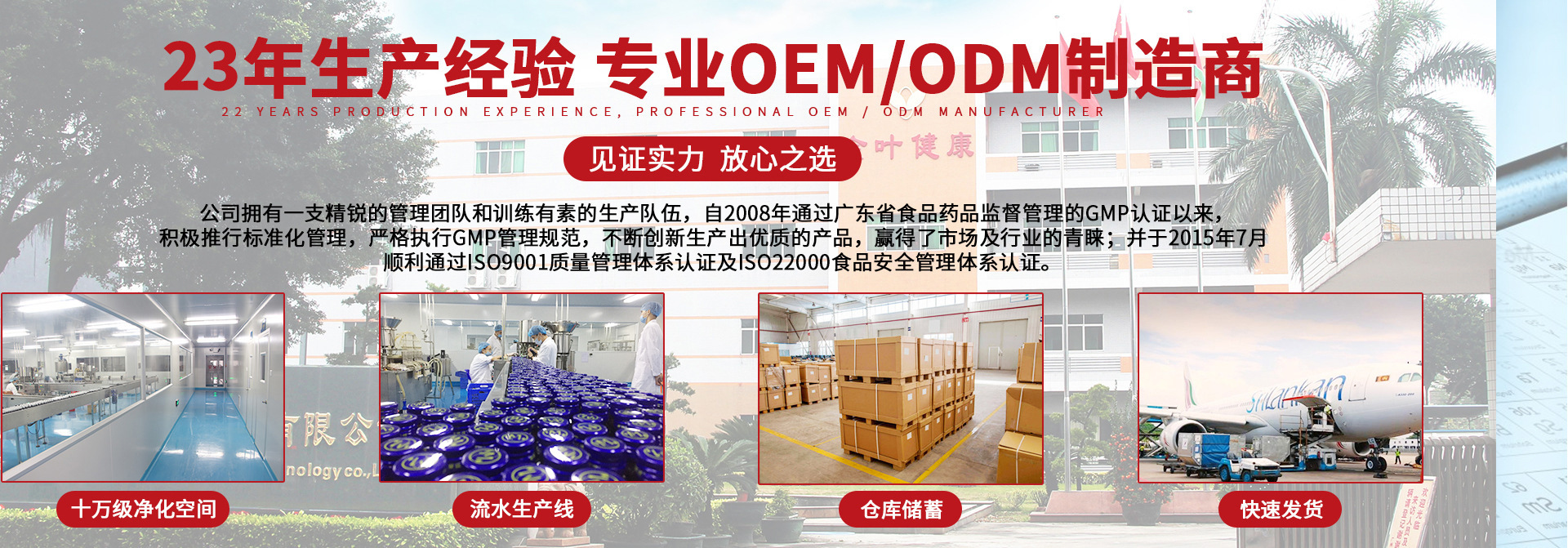 施領(lǐng)(廣州)商貿(mào)有限公司為廣州金葉健康科技有限公司的子公司,廣州金葉健康科技有限公司前身為廣州金葉保健品有限公司,成立于1997年7月1日,是一家集研發(fā)、生產(chǎn)、銷售于一體的綜合性現(xiàn)代化高新科技企業(yè)。公司坐落于廣州市白云區(qū)江高鎮(zhèn),東鄰白云國際機機場、南靠廣州物流產(chǎn)業(yè)園、西接廣清高速公路、北近廣州北二環(huán)高速公路,交通十分便利。